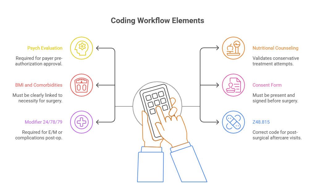 Coders should also verify whether the payer requires specific ICD-10-CM codes (e.g., Z71.3 for dietary counseling) to validate that pre-surgical services were rendered. Failing to include these will delay or deny reimbursement before the patient even reaches the OR.