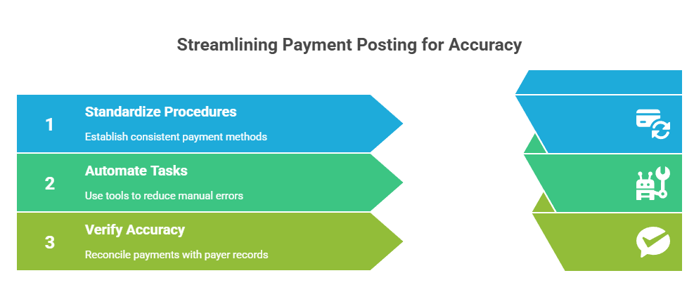 One of the most critical steps in ensuring accurate payment posting is standardizing the procedure. Having a consistent, repeatable process for handling payments across different payers ensures that every team member follows the same steps and reduces the risk of errors. It's essential that all staff members are trained on these procedures and that they understand the importance of consistency in the process.