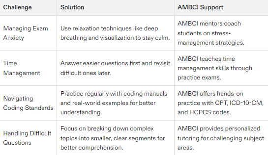 Preparation is key to success in the medical billing and coding exam. Many candidates face challenges such as anxiety, time management issues, and difficulty with complex questions. Completing a billing and coding program or preparation course is a common way to get ready for the exam.