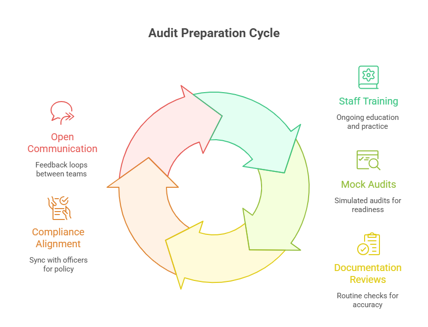 A successful audit hinges on cross-department coordination, especially with compliance teams. Before audits begin: