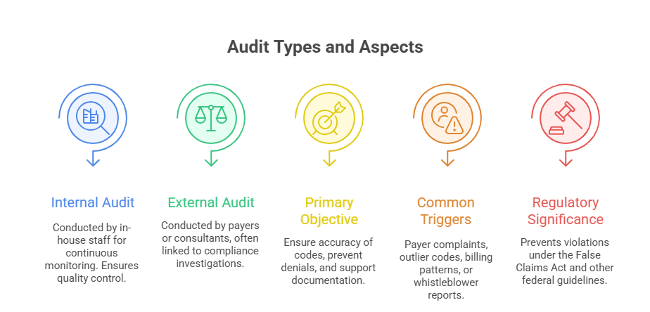 Audits can be proactive or reactive. Proactive audits help detect problems before claims go out the door. Reactive audits respond to trends like frequent denials, complaints, or payer inquiries. In both cases, the goal is to minimize risk and maximize accuracy across the board.